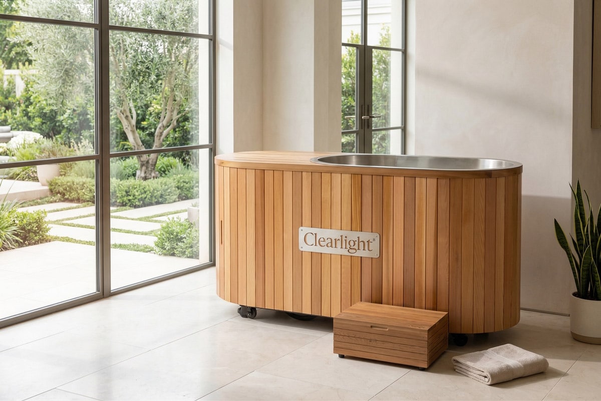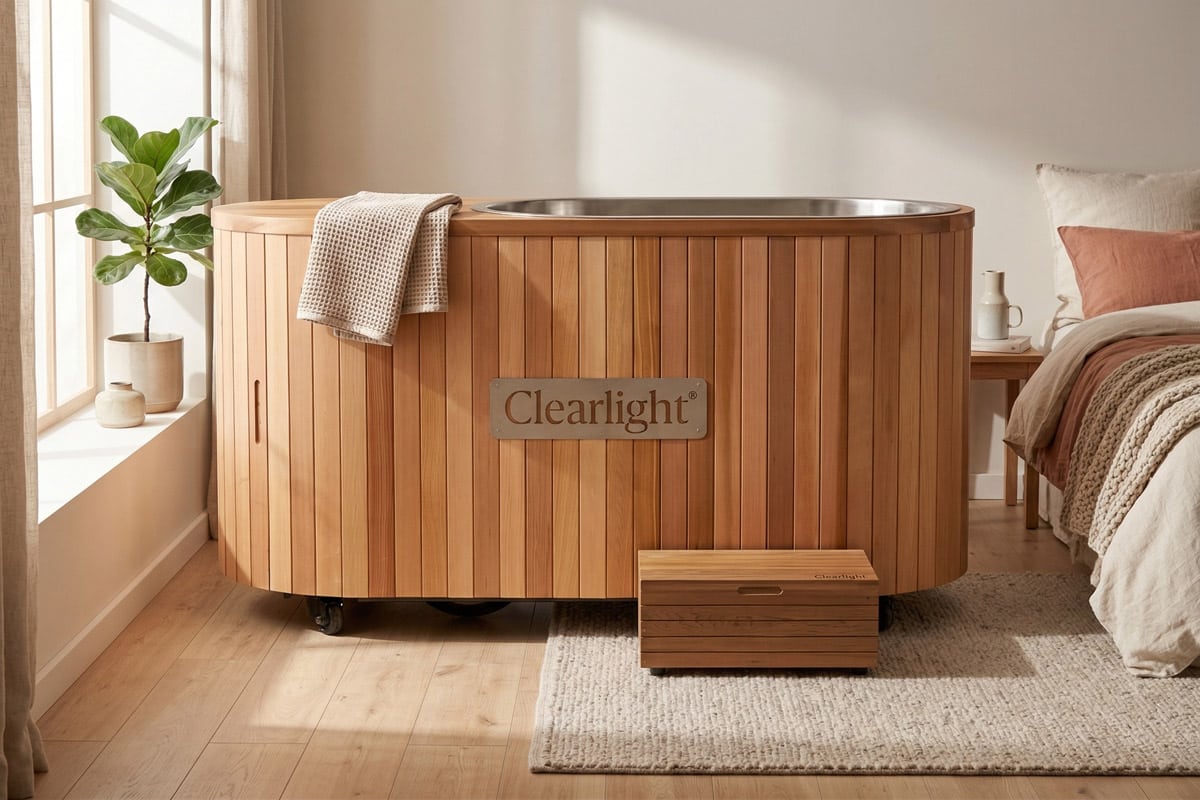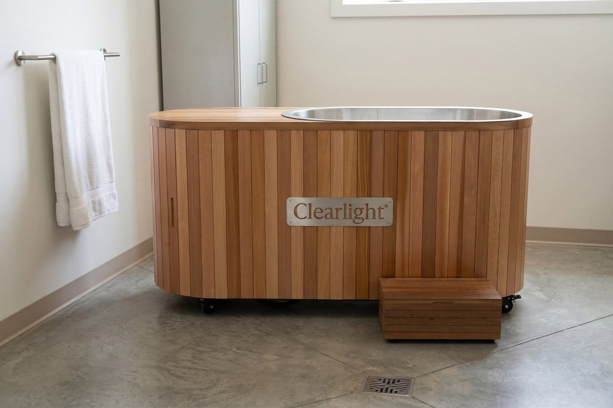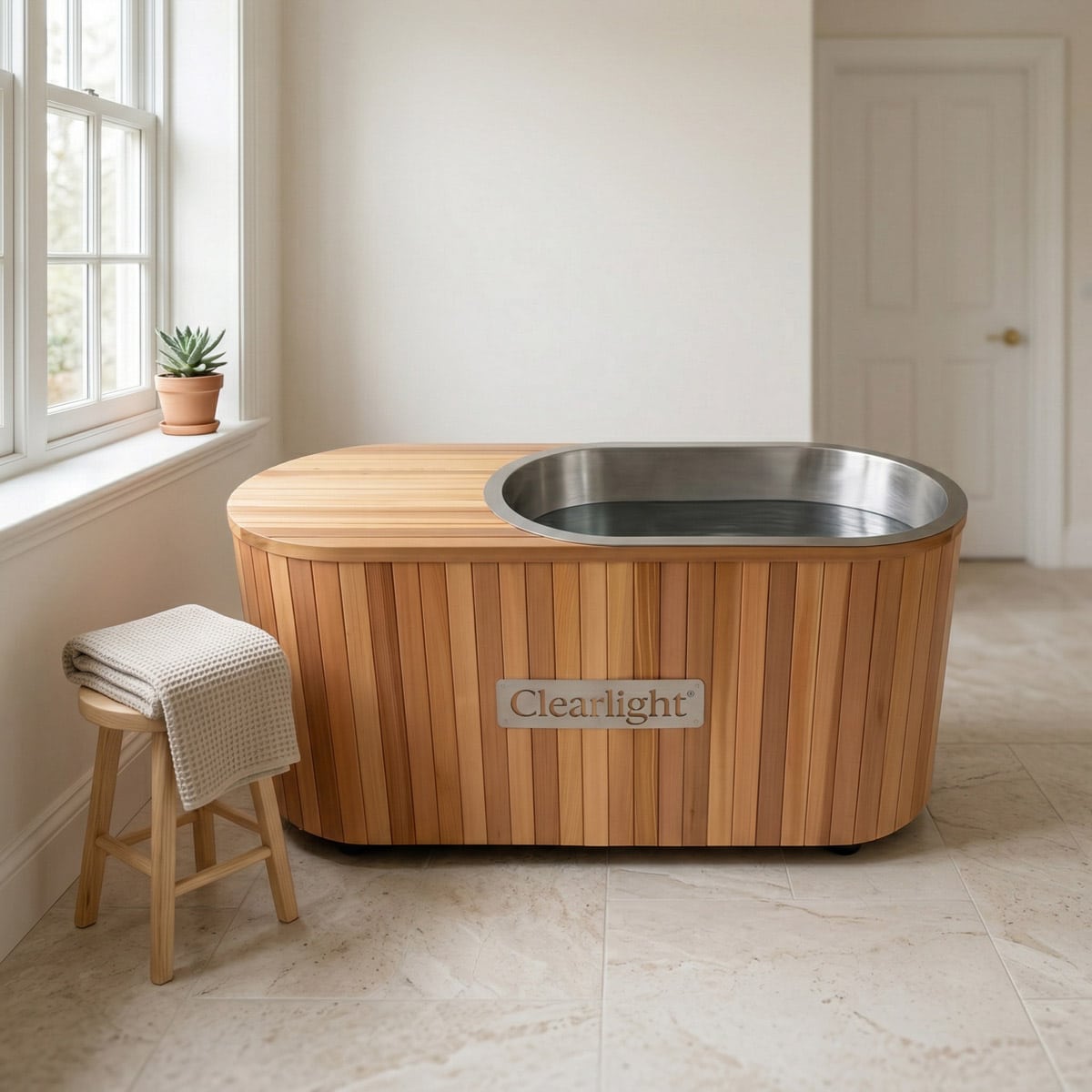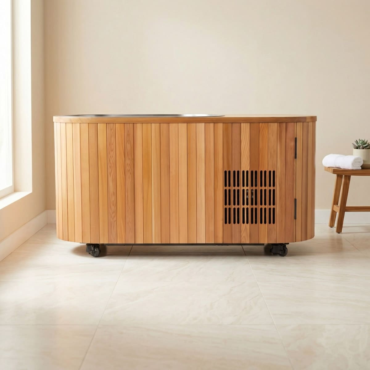 The Clearlight® Plunge is a premium cold and hot water immersion tub designed for serious wellness enthusiasts who refuse to compromise on quality. Built from brushed stainless steel and handcrafted Canadian Cedar, it chills to 36°F for deep cold therapy and heats to 104°F for a warm soak — all in one self-contained unit. Setup is effortless: no plumbing required, just fill with water and plug into a standard outlet. The built-in dual-stage cleaning system combines an ozone generator with 20-micron filtration to keep your water crystal clear with minimal maintenance. Control temperature, set schedules, and monitor sessions remotely via the SmartLife app on iOS or Android. The ergonomic integrated seat eliminates buoyancy issues for a comfortable, fully immersive experience every time. Suitable for indoor and outdoor use, it rolls on heavy-duty locking wheels and fits through standard doorways. Includes an insulated lid, cedar step with storage, and tie-down straps.