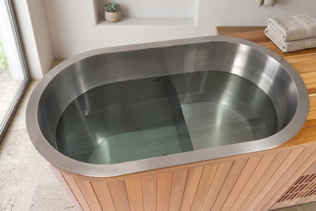- Brushed SUS 304 stainless steel tub and handcrafted Canadian Cedar exterior